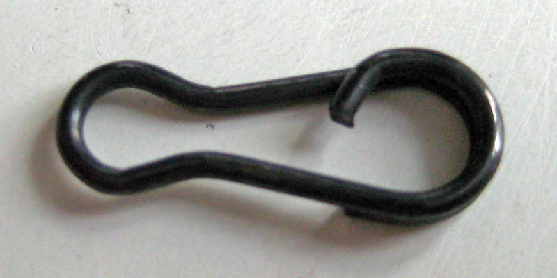 これは捨て錘仕掛け用に考案されたスナップです。線材によって色々な強さのものが市販されています。もともと石鯛釣りの仕掛けで使用されているもので、鯉釣り仕掛けで使用しているのは少数派ではないかと思います。入手しにくいのが難点です。