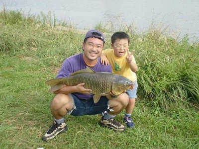 また、ポイントというか守備範囲というか行く場所はほぼ決まっており、よほどのことがない限り自分の守備範囲からはずれることは無いです。私が攻めきれるポイント数は限界があると思うし、精々週に2日しか出来ないので私は3箇所もあれば十分です。ただ、単純に出無精(デブ症、チャイマッセ!)なだけって事もあります(笑)。私が良く行くポイントは地元の釣り人しかいないので、平日は平日休みの方々が、土日は私たちのようなサラリーマンが、お互いに尊重して釣り出来ていますので場所争い等の鯉釣り人同士のトラブルはほとんど無いです。トラブルが起きるのは対象魚が違う場合です。ハゼやセイゴ、手長エビ等を狙う方々にとっては鯉釣りというのは場所ばっかりとって嫌な感じなんでしょうね・・・。