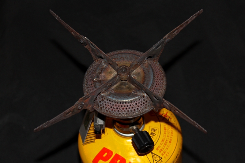 車中泊釣行を始めた2001年に真っ先に購入したアウトドア用品が、イワタニ・プリムスのP−171です。長年釣り場で活躍し、今ではサビや焦げ付きが起こり写真のような姿になっていますが、一度も故障したことがありません。