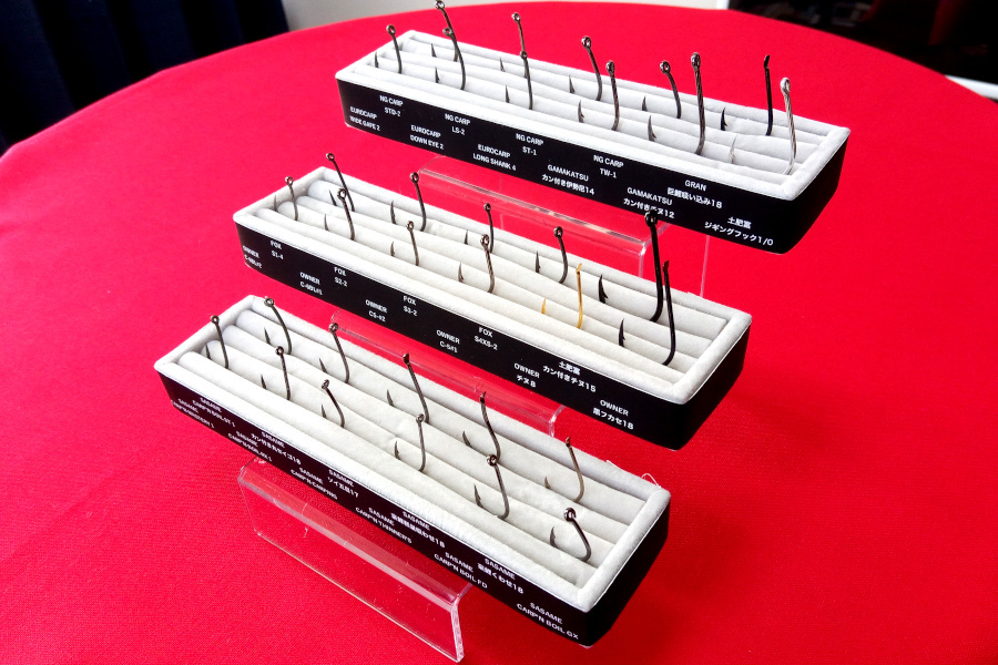 初めはフックのコレクションです。大きいのがいくつかありますが、これはアオウオ用です。ボイリー用フックは多摩川に通っていたころ購入したものがほとんどで、今となっては荒川オフ会で消費する程度になってしまいました。このままでは一生かかっても使いきれないほど在庫があるかもしれません。
