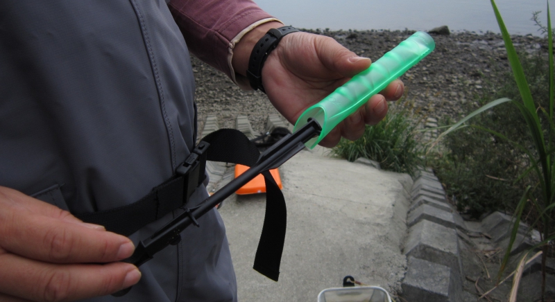 ボイリーを二つに切るカッターです。16mm用と20mm用の二種類あります。グリーンのシリンダにボイリーを数個入れ、黒いスティックで押すとボイリーがカットされて出てきます。