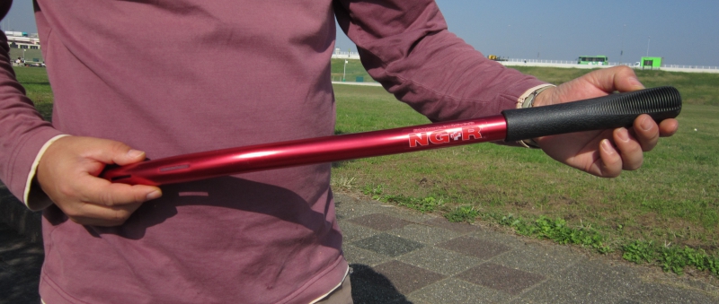 アルミ合金製、赤色アルマイトメッキのパイプです。ボイリーの軌道に関して左右のブレが少なく、十分飛距離を出せるパイプです。投げる時のアルミ金属音が印象的。