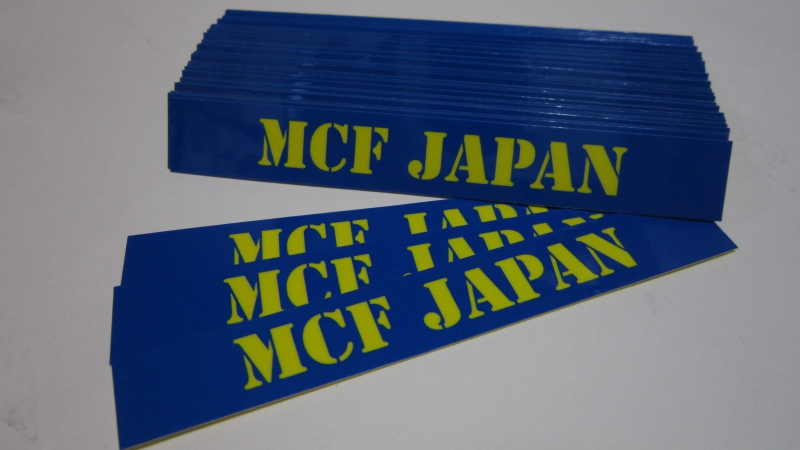 前作のMCFスリムステッカーから文字デザインを一新しました。今回のフォントは安定感の強いStencil。ロッドやロッドポッドなどに貼っています。