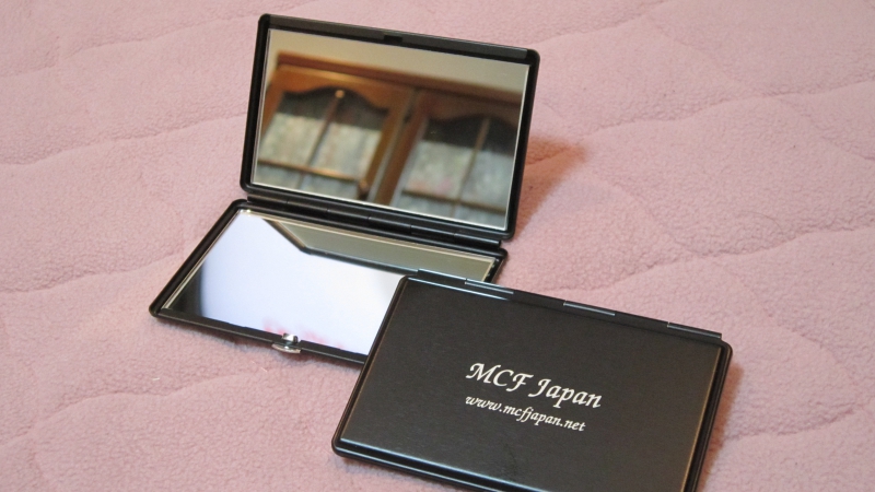 [ 仕様 ] サイズ 90×58mm、ガラスミラー(2枚)、アルミ製ケース、ブラックアルマイトメッキ