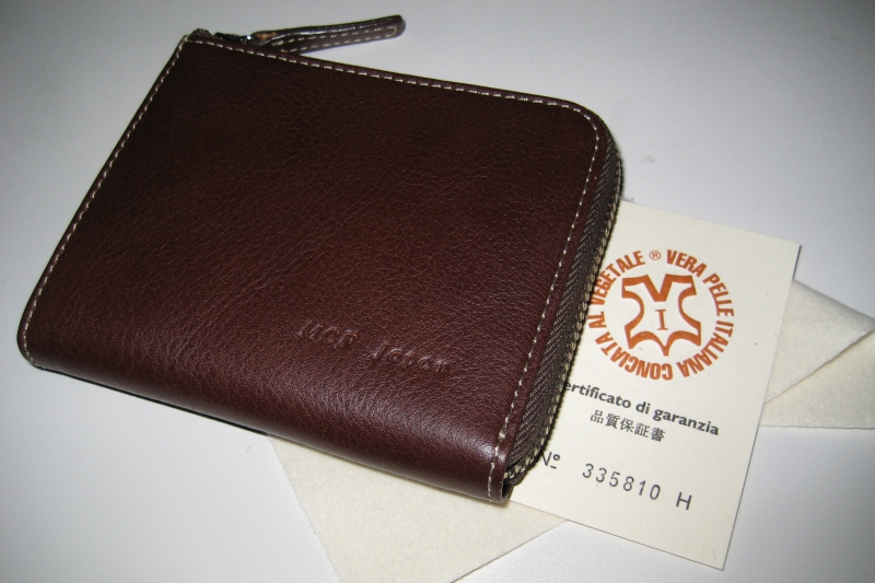 釣行時に邪魔にならない、薄型のジッパー付きウォレットです。MCFの名入れは、拡大写真でご覧ください。