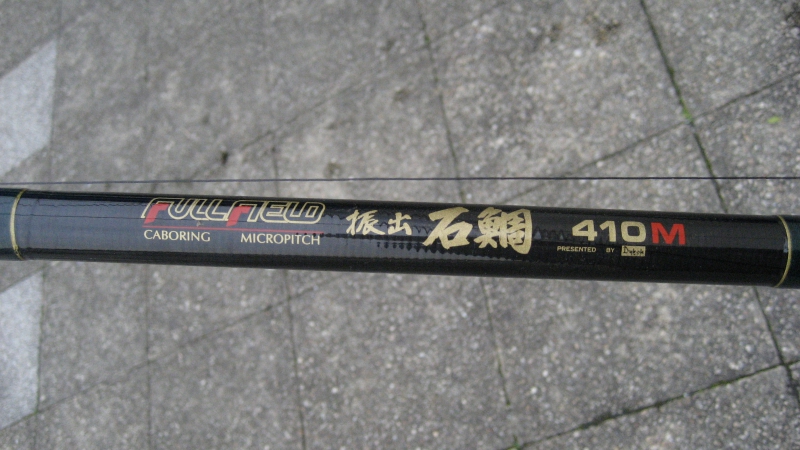 1989年に発売されたフルフィールド石鯛シリーズの中で、全長が最も短い振出竿です。ダイコーの歴史を紐解くと、これ以前に発売された短竿は、1980年に発売した3.95mの舟釣り用石鯛竿がありますが、自重が680gもありました。フルフィールドになると材質の進歩により、自重が435gと圧倒的な軽量化を達成しました。ダイコーでは4.1mのラインナップはこの竿が初めてです。このフルフィールド石鯛は、ダイコーが自社の石鯛竿の歴史を語る上ではずすことのできない名作と謳っており、現在の石鯛竿の原型です。