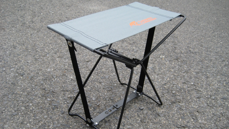 付属の袋に入れて収納する、超コンパクトチェアです。他のコンパクトチェアと比べて座り心地が良いため、最近はこればかり使用しています。座面の布地に強いテンションがかかる構造が、座り心地のポイントです。地面が凸凹している所では、全体がひずんでしまうのが難点です。