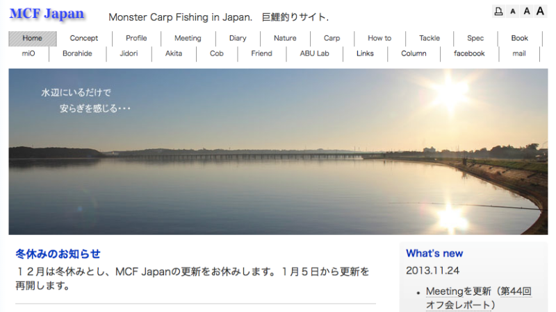 2013.01.27 Links > Carpを更新(鯉釣りサイト2件追加)