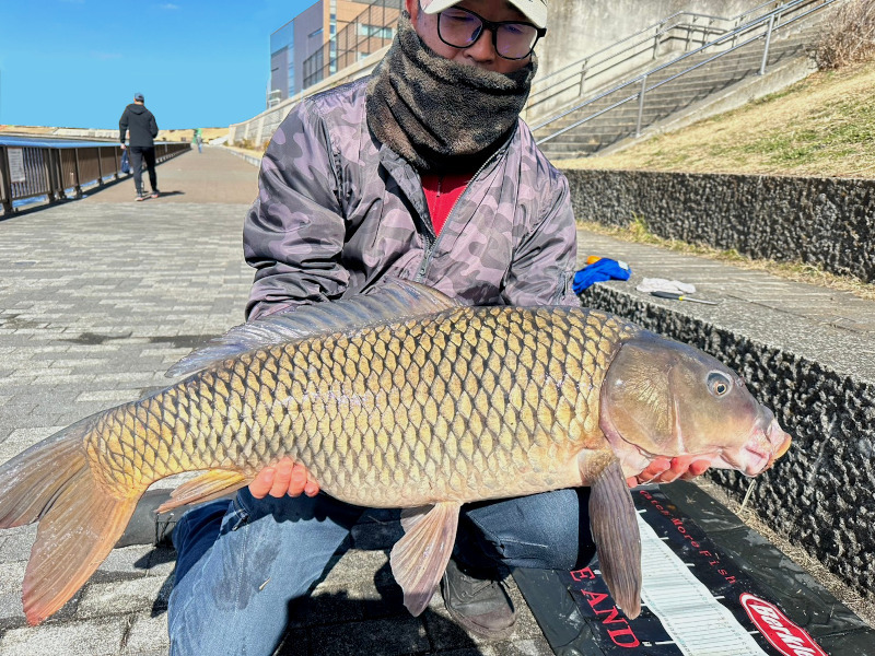 2月の隅田川では、ぼらひでさんが釣り上げた鯉が注目を集めました。一見して1m超えかと思われたその鯉ですが、冷静に測り直した結果、わずかに足りないサイズ。それでも、隅田川では非常に稀な大物で、同行していたエルボさんと大盛り上がりとなりました。この日のエルボさんも90cmオーバーを釣り上げましたが、ぼらひでさんのインパクトに影が薄れてしまうほどでした(笑)。