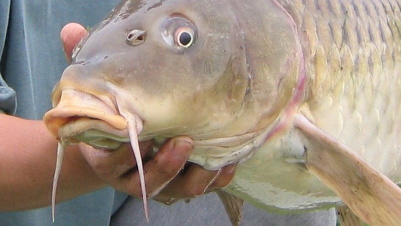 鯉は水底にある餌を泥ごと吸込み、必要な餌だけ残して不要物を口から吐き出します。従って、口は下方に長く伸びるようにできていて、左の写真のように普段はシワシワに折りたたまれています。いつも鯉を釣っている皆さんはすでに経験済みでしょうが、鯉の口は他の魚と比較して割と肉厚にできています。このためフッキングするとガッチリハリが食い込み、なかなかはずれないことがあります。