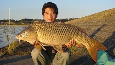 日本では、鯉釣りの対象として真鯉が一般的です。全身が美しい鱗で覆われているため、鱗鯉と呼ばれることもあります。写真のように背中が盛り上がった体高の高いものは一般に養殖種といわれ、体高が低く流線型のものが野生種とされています。しかし完全な野生種は、現代ではなかなか見ることが出来ないようです。鯉の地方名は色々ありますので、「 鯉の名前」のページを参照して下さい。