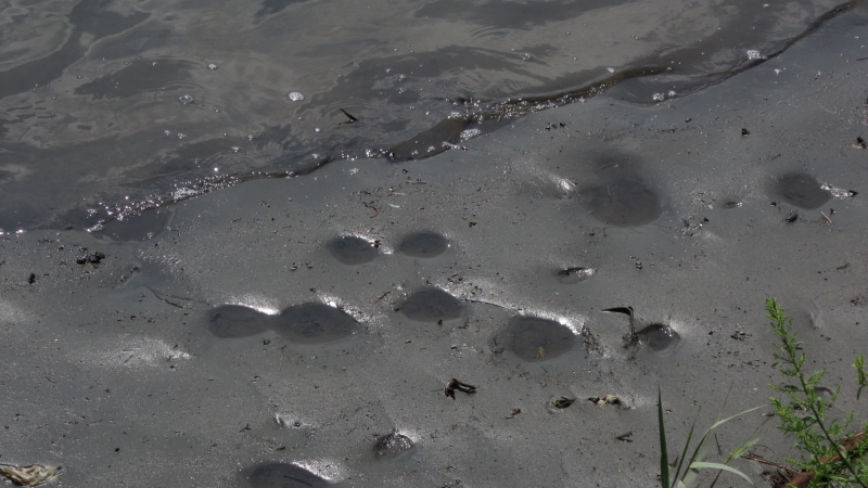 最初に目指したポイントは先客がいるため、さらに自転車を走らせる。春以来の自転車釣行につき、ペダルを漕ぐ力が衰えているのがはっきりとわかる。ギヤを一段下げ、無理をしないようにして目的地に到着。潮が引いた後に無数の食み跡が残る浅場に竿を出した。時折鯉の姿が偏向グラス越しに確認できるが、昨シーズンここを攻めた時は当たりを貰えず、まだ攻め方を掴みきれていないエリアである。手前の駆け上がりとやや沖目にそれぞれ一本ずつ投入した。時刻は11時半。これから次第に上げ始める。