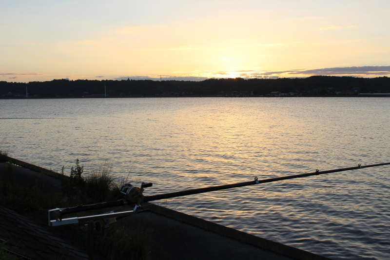 日中は予報通り終日強風が続き、ラインが横に煽られて当たる気がしないまま時間が過ぎた。南寄りの風が途中から北寄りに切り替わったものの当たりはなく、あの1匹が最初で最後の釣果だといやだなぁ・・・という不安が一瞬よぎったが、そんな心配はいらなかった。