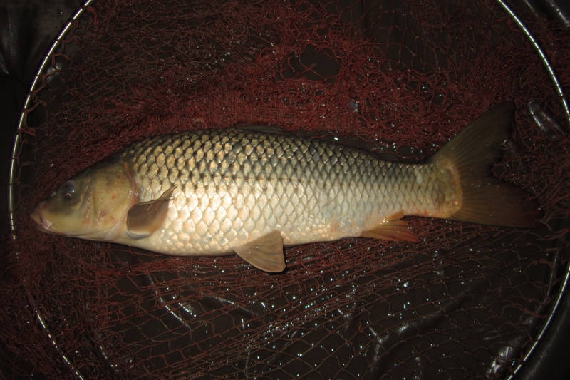 8時45分にこの夜最初の当たり。さらに9時半、11時半、日付が変わって午前2時の合計4匹の釣果。いずれも写真のような可愛い鯉だったが、センサーが鳴ったときのドキドキ感は味わうことができた。今回は一帯にこのサイズの群が入ってしまったのだろう。サイズは時の運であるが、この釣り場はしばらく寝かせておいた方が将来の釣果に繋がるかもしれない。やはり10年前とは状況が全く違っている。