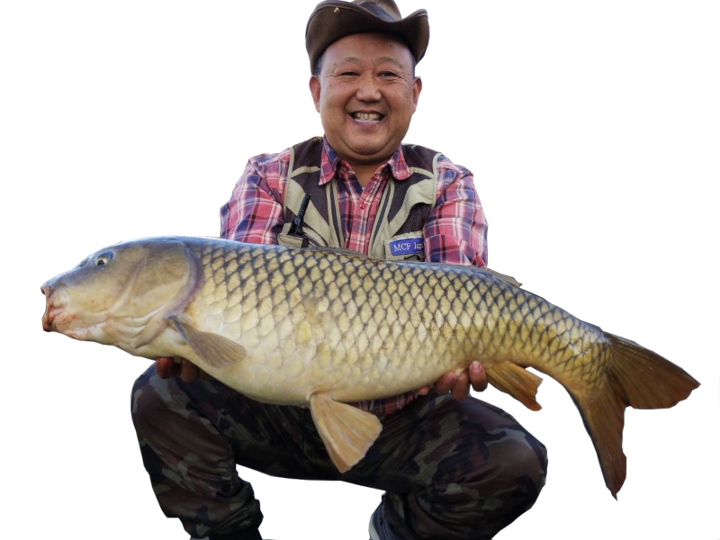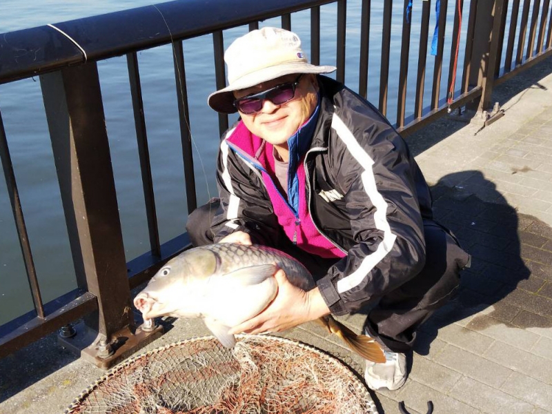 その後エルボさんに2本。「写真撮るよ」と言ったら照れくさそうにポーズ。その後、鯉のアタリはありませんでしたが、穏やか天気のもと楽しい1日でした。