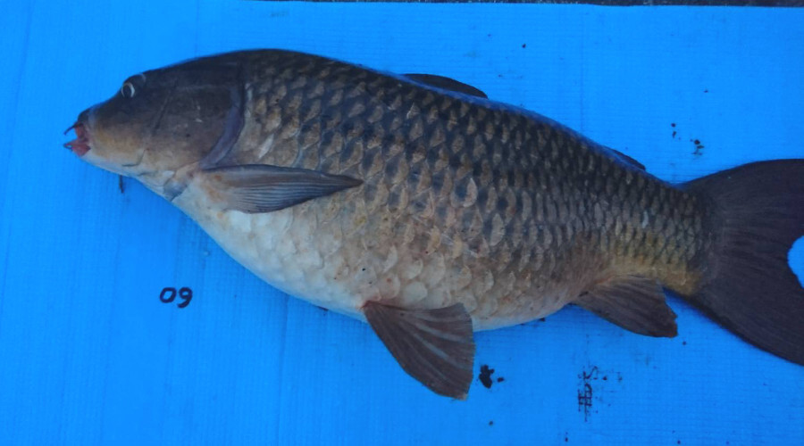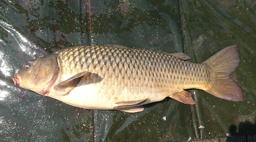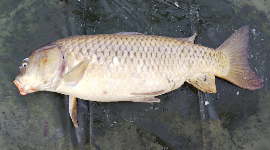 こぶ:マットを洗ったところで、再びアタリ!丸々とした鯉です。