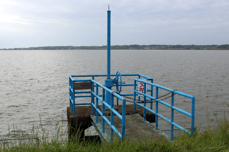 いよいよ霞ヶ浦に到着です。湖岸道路に立つこの標識を見るたびにゴールの看板に見えます。ここから近い水門に入ることにしました。写真のように何の変哲もない小さな水門です。