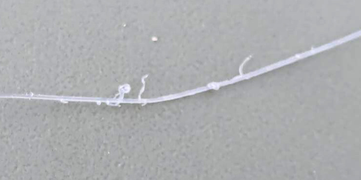 こぶ:またまた上流の竿にアタリ!今度は強烈!竿を持った瞬間にラインブレイク⤵️10号のラインがギザギザ、一瞬で切られました!