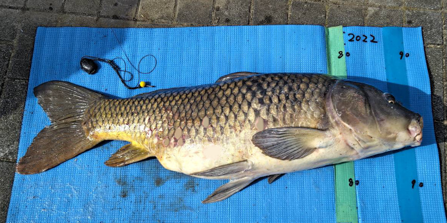そして12時頃、エルボに3本目!最初マットに乗せた時は90センチちょっと超えかと思いましたが、ちゃんと計測したところ95センチ!先週のオフ会のリベンジ。復活隅田川祭りだぃ!!