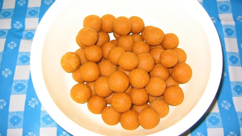 一個ずつ丁寧に手のひらで丸めていきます。ここでも中に空気が入ったり、割れが入ったりしないように注意して作業します。写真のボイリーは、直径がだいたい2cm程度の大き目のものですが、小さいものは1〜1.5cm程度にします。