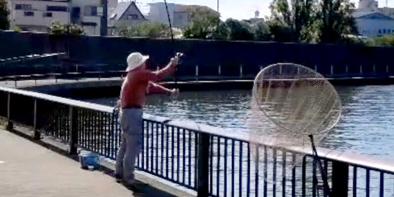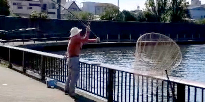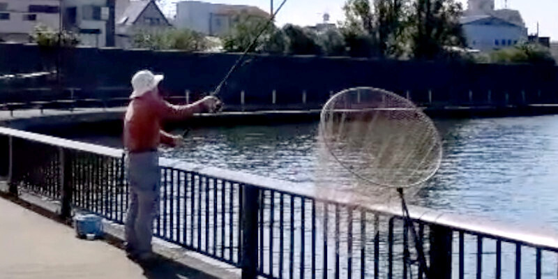 さらに30~50メートルの距離に投入するためには、足を前に踏み出して投入するフォームが向いています。これは上述の基本フォームよりやや足の間隔を狭くして立ち、竿を頭上から振り下ろす際に左足をまっすぐ前に踏み出す方法と、はじめから一歩踏み出しておく方法があります。