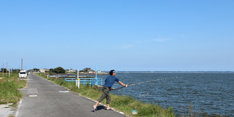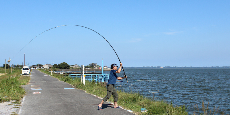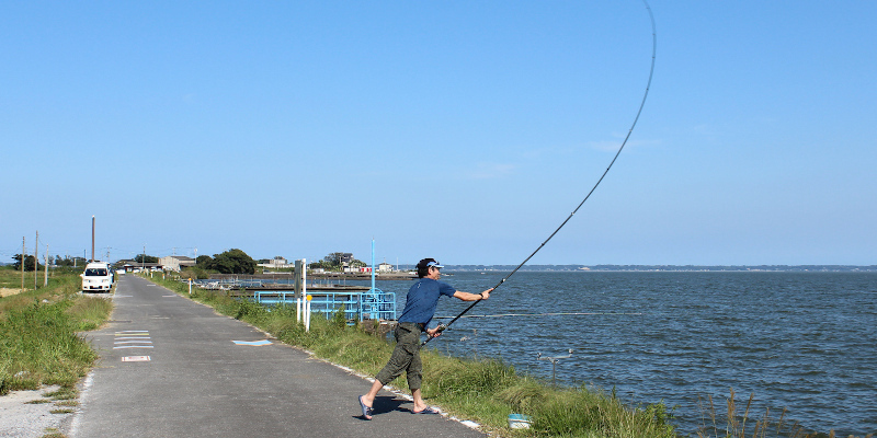 50メートル以上の遠投で釣果をあげた話も聞きますが、私の経験ではだいたい30メートル前後での釣果が多いです。どうしても遠投したい場合は、投入フォームをかえるのではなく、餌のサイズをやや小さめにし軽くして対処します。