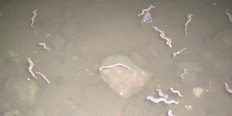 バチ抜けはゴカイの産卵行動。普段川底にもぐっているゴカイが一斉に水中を泳ぎ出す。