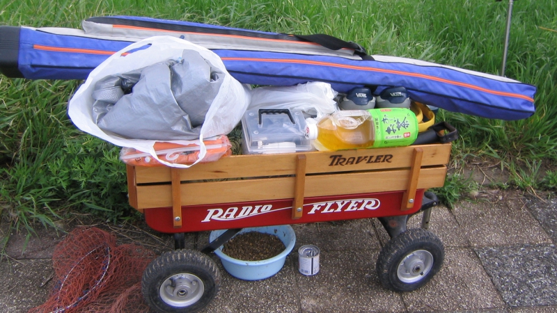 USAで古くからポピュラーなラジオフライヤーを活用しているのが特徴です。写真には写っていませんが、着脱可能な長いハンドルがあり、これを引いて移動します。釣り場の近くまで車で行き、ポイントまでの移動をこれで行います。荷物をどっさり積んでも苦になりません。新しい発想の担ぎ込みスタイルです。