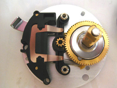 写真3では、ギヤ比が63歯対10歯、すなわち6.3:1であることがわかります。ピニオンギヤの歯先はかなり尖っており、穴の周囲も薄肉化されています。6500シリーズの小さなサイドプレート内に収めるには、この構成がギリギリの設計と感じます。