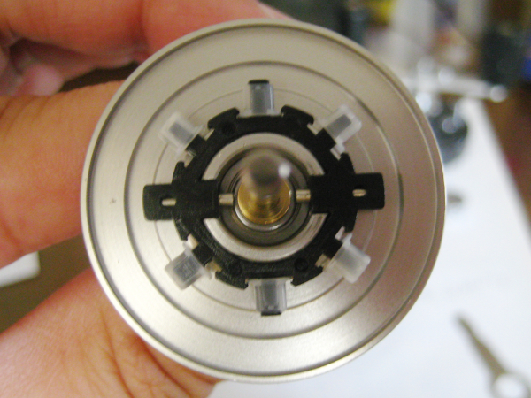 さて、遠心ブレーキに関しては、フットナンバーが1500番までは2点式、それ以降の2000番台からは6点式に変更されていることが分かりました。ギヤ比については、0801番以前のモデルが5.3:1、1100番以降は6.3:1に切り替わっています。このギヤ比については、パーツリストに明記されているわけではありませんが、メインギヤとピニオンギヤのパーツ番号から類推できます。私の手元にある2種類のリールと照合して、仕様の違いを確認しました。