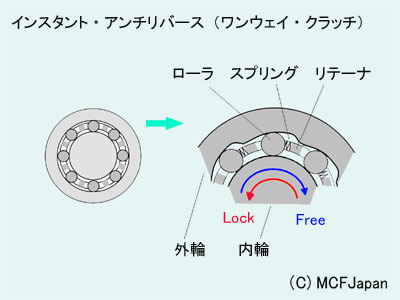 インスタントアンチリバース機構(ワンウェイクラッチ)の原理