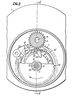 この機構に関する特許は、1961年に出願されています。発売時期との関係から見ても、この特許はAmbassadeur 8000の開発段階での技術的発明であることは想像に難くありません。