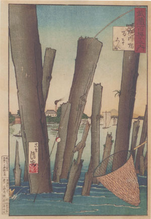 武蔵百景之内 大川端百本くい 小林清親