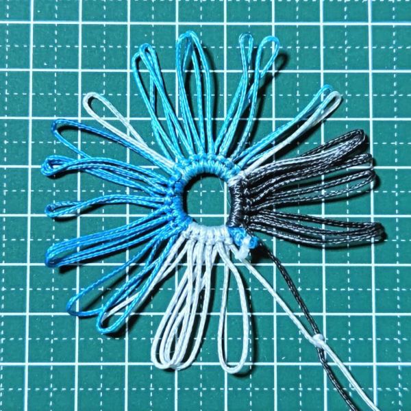 製作は少しずつ進められており、まず最初の工程としてヘソ部分が作られました。ヘソの輪にはPE20号の糸を使用し、そこからPE16号を使って目を増やしながら154目に到達するまで編み進める計画です。