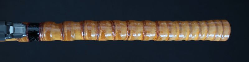 竿全体に本透明漆を約10回重ね塗り。しっとりと落ち着いた光沢と、手に馴染む滑らかな触り心地に仕上がりました。