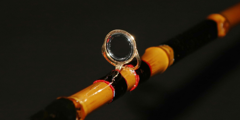 ガイドとリールシートは糸で巻き付け、その上から黒漆を数回塗り込めて固定。丈夫さと美しさを兼ね備えています。