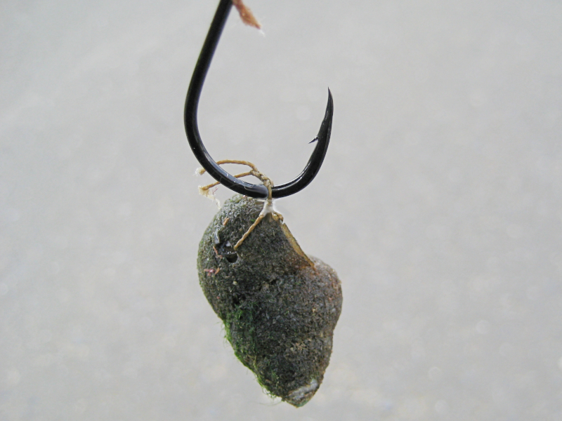 PVAバッグはフックに掛けたり、錘の近くに結びつけたりしてキャストします。底に着いたら、仕掛けを少し手前に引いて位置を整え、アタリを待ちます。