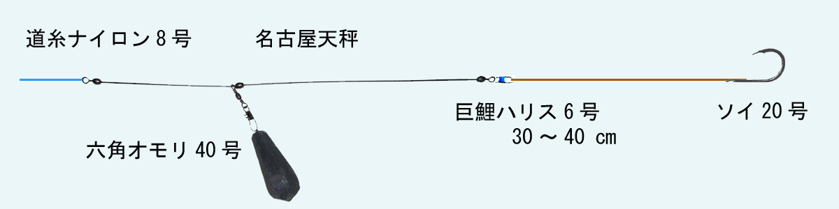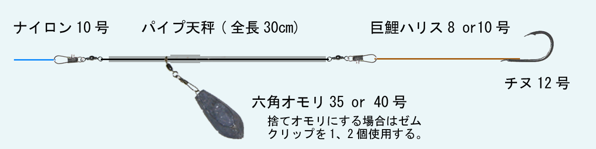 利根川本流のゴロタ石が多く沈んでいるポイントを主戦場とされており、根掛かりが頻発する環境のため、天秤は使用されません。