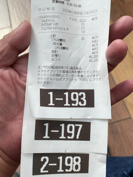 お昼になったので、ぼらひでさんと私は四人分のランチの買い出しに行きました。都会の釣り場は、買い物に不自由しないのが大きなメリットです。3人分のハンバーガーセットと、天丼ひとつをオーダー。注文のために並んでいると、留守番部隊からぼらひでんに電話。私の竿に当たったので、「どうしよう?」「上げちゃって!」と私が返事。釣り場を離れるときは、いつでもこうなることを覚悟しています。あとでスマホを見ると、何度も電話をしてくれた履歴が残っていました。ガヤガヤした店内で並んでいたので、バッグに入れたスマホの音に気が付きませんでした。ごめんね!
