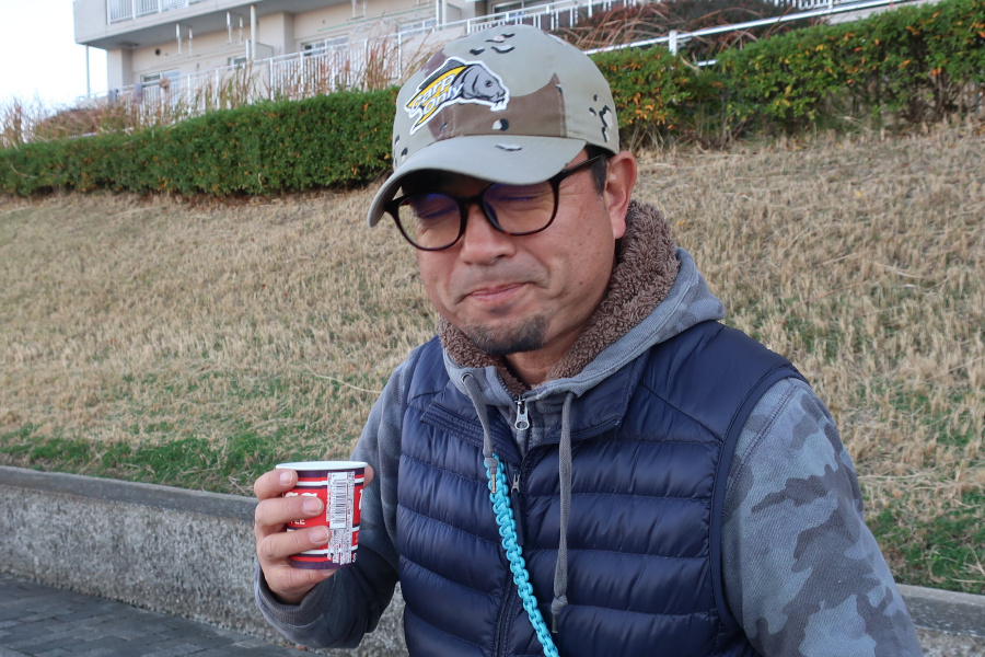 落ち着いたところで、こぶちゃんがガスバーナーでお湯を沸かし、コーヒーやコーンポタージュを入れてくれました。今日は天気がいいとはいえ12月です。こうした温かい飲み物をいただくと、自然に笑顔になってきます。