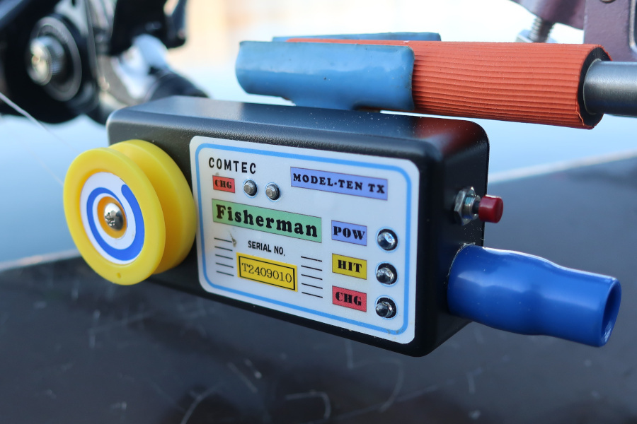 みんなのタックルを順番にみていくと、ぼらひでさんのセンサーが新しくなっていました。コムテックさんの最新機種「M-TEN ローラスイッチ仕様」です。実物を初めてみました。コムテックさんはどんどん進化していますね。