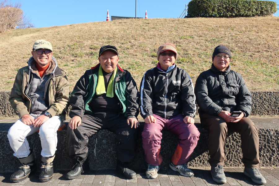 最後に恒例の集合写真です。釣果は寂しくても集合写真があればオフ会らしくなります(笑)「次は暖かくなり始める頃に集まれるといいね」と言いつつ、2時半過ぎから撤収を開始しました。