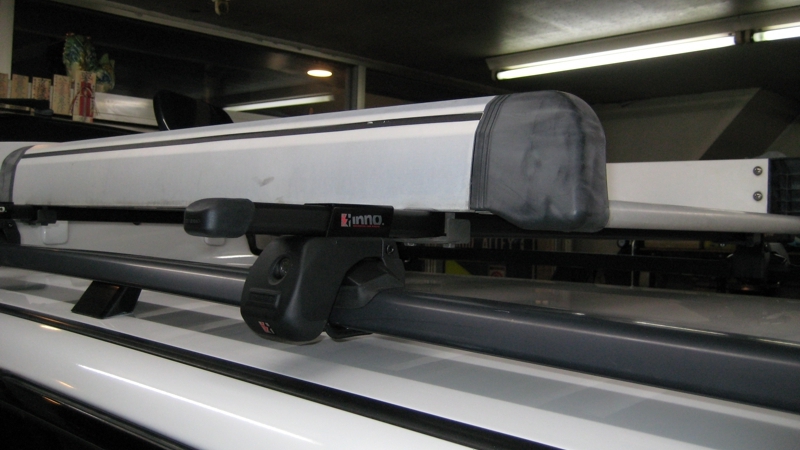 KEN AUTOMOBILEにて、いよいよ改造開始。まずは先代グランディスからはずしたオプションパーツを、今度の車に付けることから始めます。長年愛用しているルーフキャリアはだいぶ色褪せていますが、捨てるのはもったいないので使うことにしました。アンフッキングマットなど釣り場で濡れたものをくくりつけて走るのに便利であるし、普段買い物に行った時などは、大きな駐車場で車を捜すのに家族もこのキャリアを目印に探す癖がついてしまっています(笑)。その他に、カーテン、センターコンソール、ワイドバイザー、オーディオ、タイヤなどもそっくり移し替えました。これだけ愛用品を移植したら、車を乗り換えた気がしないかもしれない。