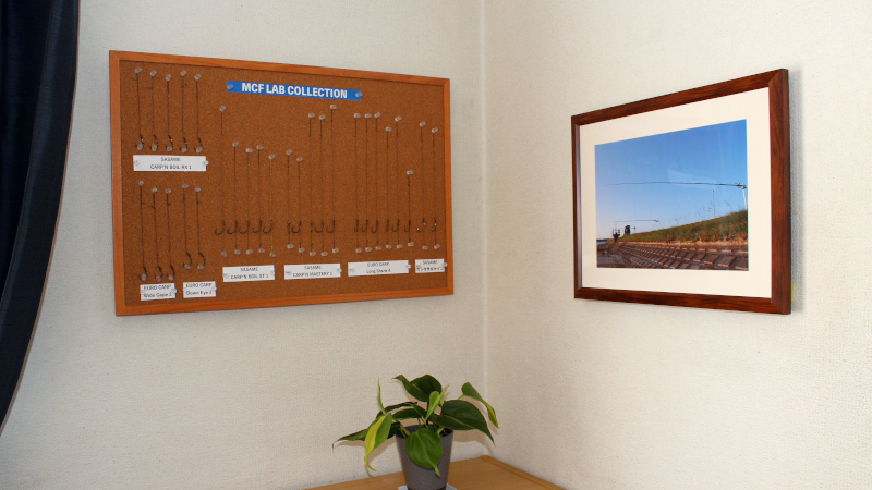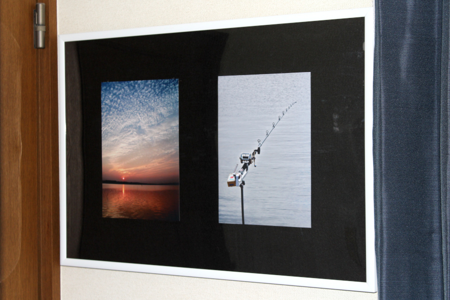 以上が壁インテリアですが、釣果写真がないことにお気づきでしょう。後で説明すると思いますが、書籍のところにL版の小さい写真が一枚あるだけです。これは無意識にこうなったわけですが、おそらく私にとっては釣果よりも釣り場の臨場感が大事なんだろうと自己分析しています。(大した釣果がないというのも理由かもしれませんが・・・笑)