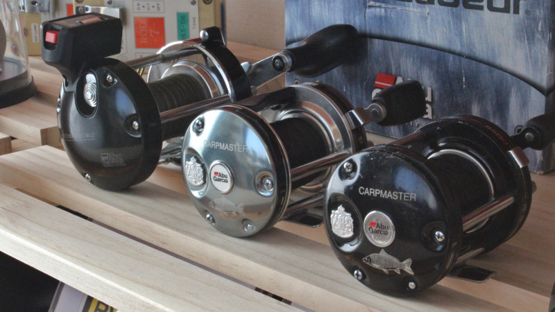 これもABUのリールです。左のリールはラインカウンター付きで、水郷釣行のときは距離確認用としていつも持参しています。右2台はCARPMASTERというリールで、製造年によってカラーが違います。北米の限定販売のようで、個人輸入しました。(詳細はこちら)