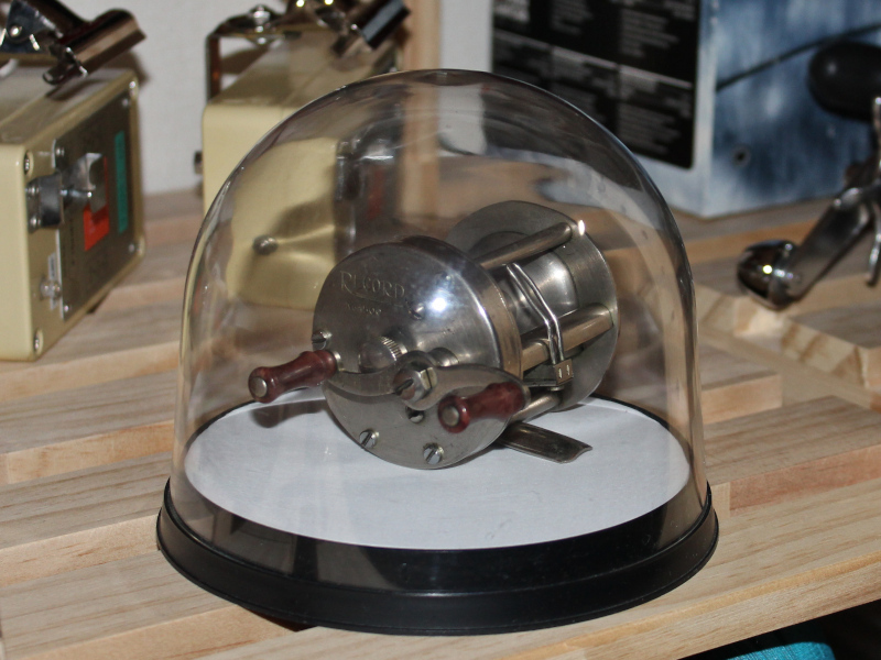 これはABUのヴィンテージリールで、1940年代に製造されたものです。RECORD1500というリールで、ABU最初のモデルです。(詳細はこちら)都内の中古釣具店で見つけて購入して以来、このケースに入れてオブジェとして鑑賞しています。