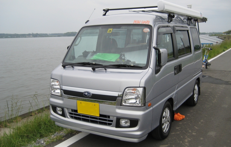 2009年に購入した軽キャンピングカーです。リヤエンジンを備えたスバルサンバーをベースとし、高級感溢れる収納家具と二人分の就寝スペース、サイドオーニング、ガソリンFFヒーター、LED室内スポット照明など、家族ふたりの釣行を前提に十分な機能を備えた車です。