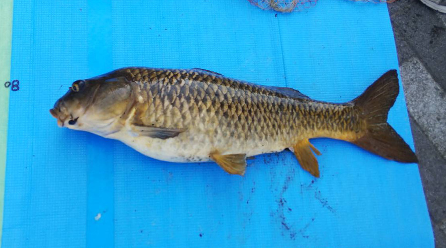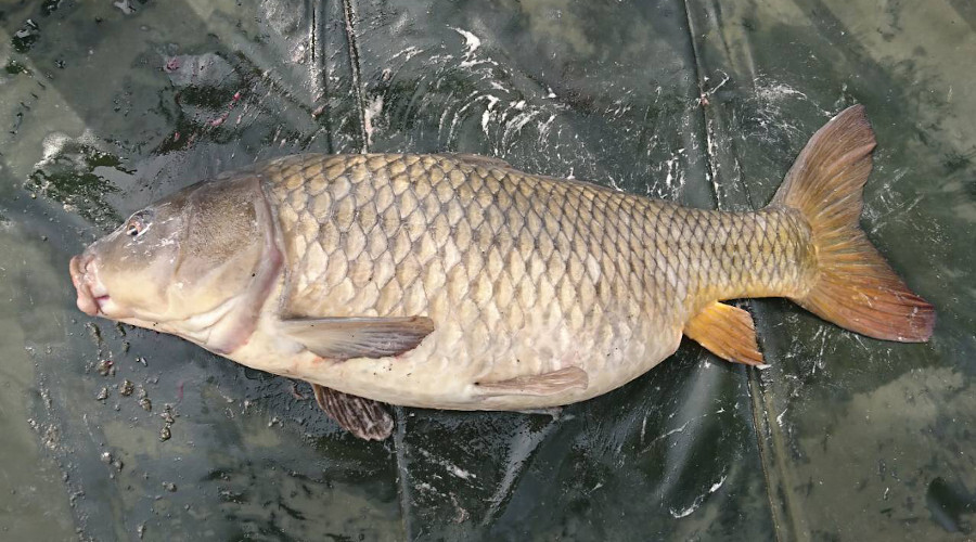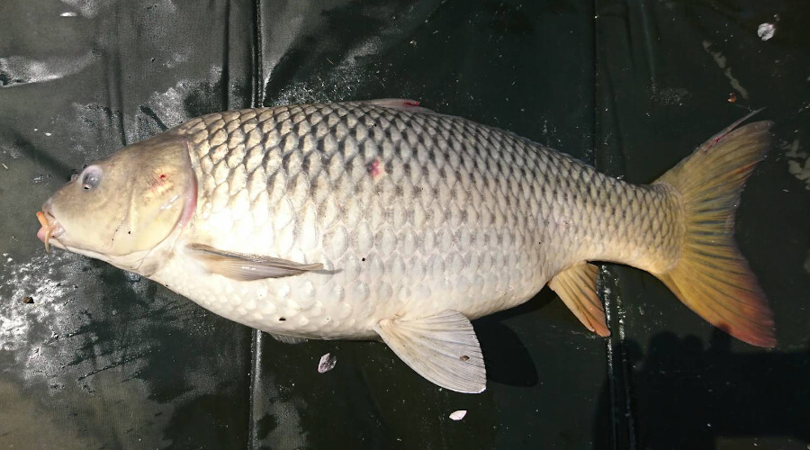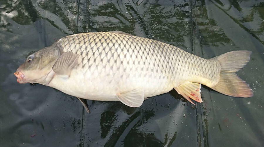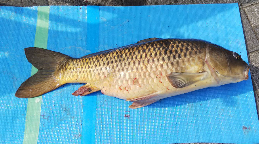 こぶ:マットを洗ったところで、再びアタリ!丸々とした鯉です。