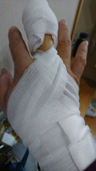 こぶ:帰宅して荷物を片していたら、エルボさんが病院の帰りに寄ってくれました。指には、しっかりと包帯で・・・今朝方、今日の運勢は凶なんて入ってたから、当たっちゃったねって話してました。でも、今日は二人でツ抜けだねって、笑いながら別れました。