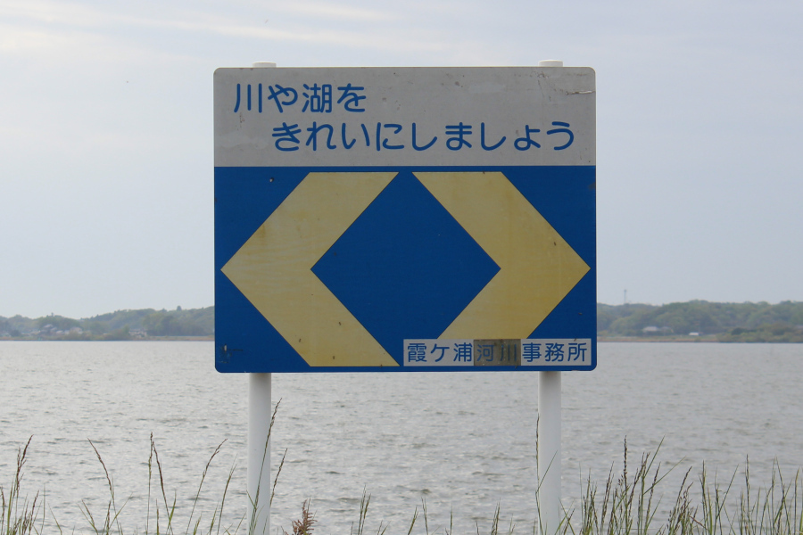 いよいよ霞ヶ浦に到着です。湖岸道路に立つこの標識を見るたびにゴールの看板に見えます。ここから近い水門に入ることにしました。写真のように何の変哲もない小さな水門です。